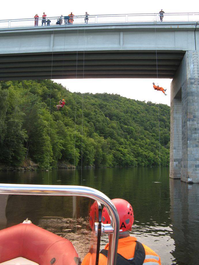 Zažijeme adrenalinové slaňování z Živohošťského mostu do lodi (zajištěno bezpečné jištění záchranářema a veškeré potřebné vybavení).